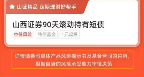 券商对投资者适当性方面始终保持不缺失的状态,如山西证券在宣传海报中提示,“详情请参照具体产品风险揭示书及基金合同的内容,根据自身的风险承受能力审慎决策”。